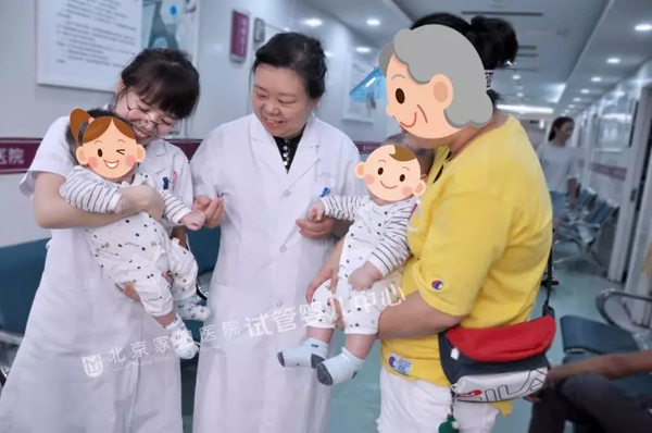 在王颖主任和周先生夫妇的共同努力下,仅一次试管婴儿即宣告成功。这段医患之间的特殊缘份,让周先生夫妇倍加珍惜。龙凤胎宝宝刚刚3个月,夫妻俩就带着孩子来到北京家圆试管婴儿医院,看望把他们带到这个世界上的王颖主任和医护人员。