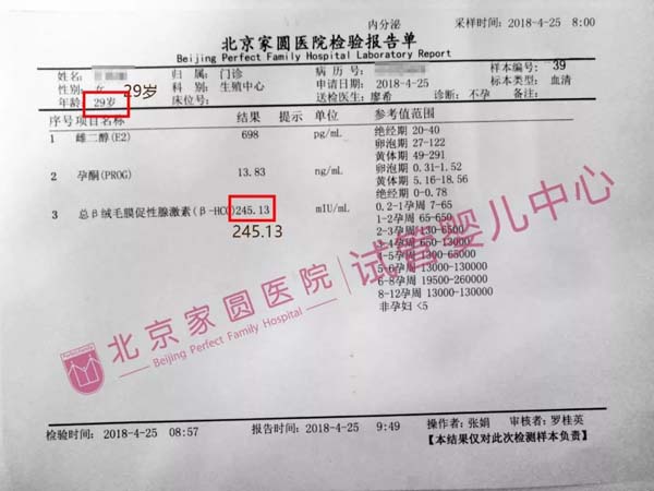 2018年4月13日,廖希主任亲自移植了2个新鲜胚胎,剩余胚胎全部冷冻保存。